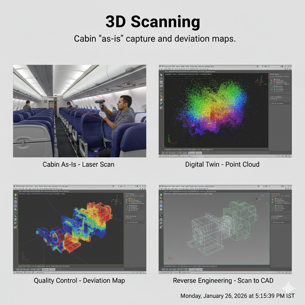 Cabin “as-is” capture and deviation maps.