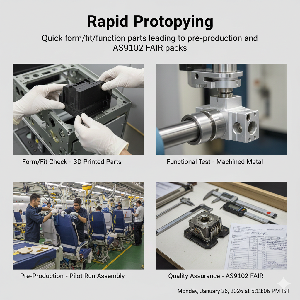 Quick form/fit/function parts leading to pre-production and AS9102 FAIR packs.